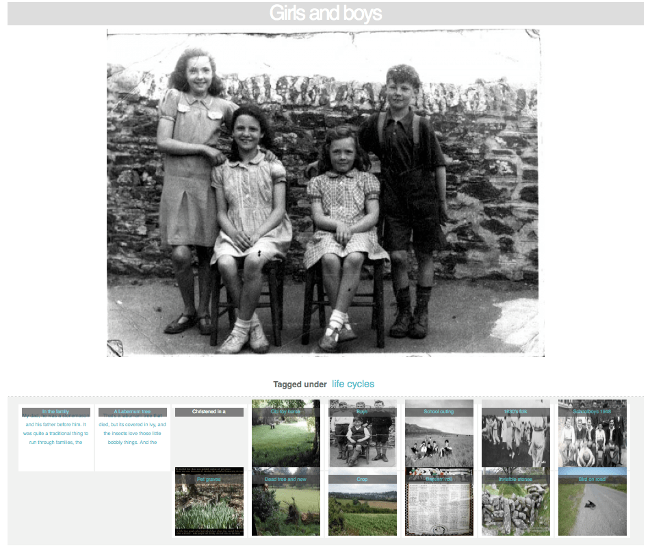 The deep mapping of Delphy Bridge, Bodmin Moor, developed through close-engagement with the environment and community but did not aim to present clear and detailed information of that place, rather it presented a more ambiguous and unstable evocation of a lived landscape. A multi-vocal and subjective landscape consisting of digital media to be explored in an open-ended, online ramble was developed. A sophisticated tagging system was designed to enable the user to create their own pathways through this multi-media ‘landscape’. This project was a variant of deep mapping as expounded by Cliff McLucas and developed by Iain Biggs.